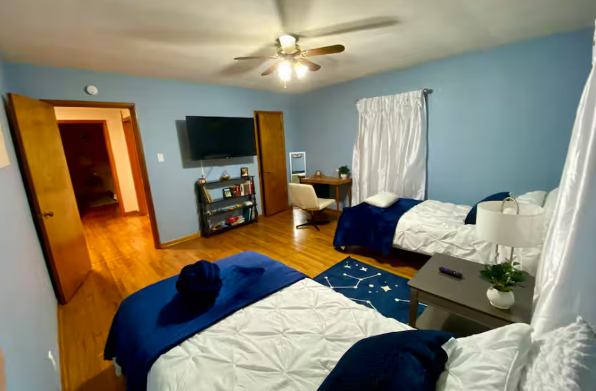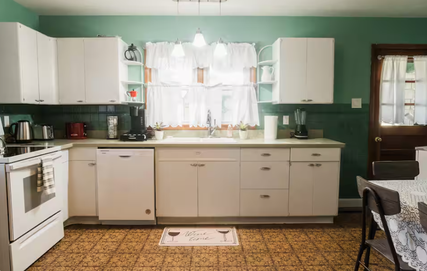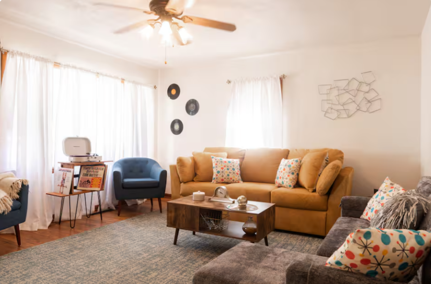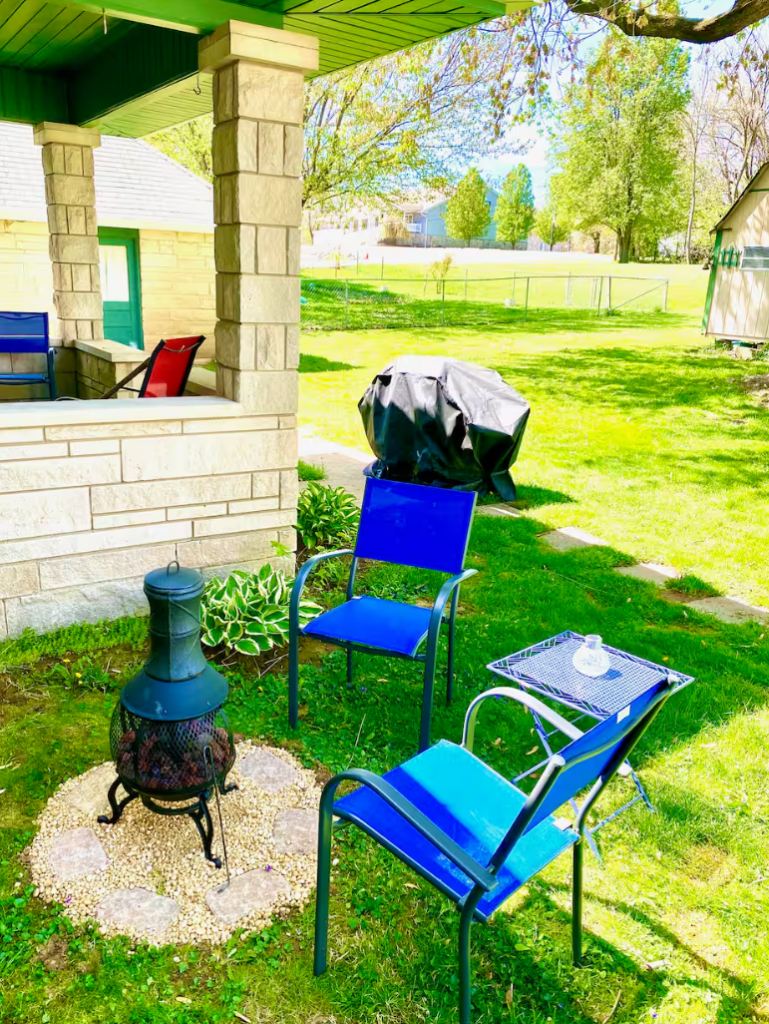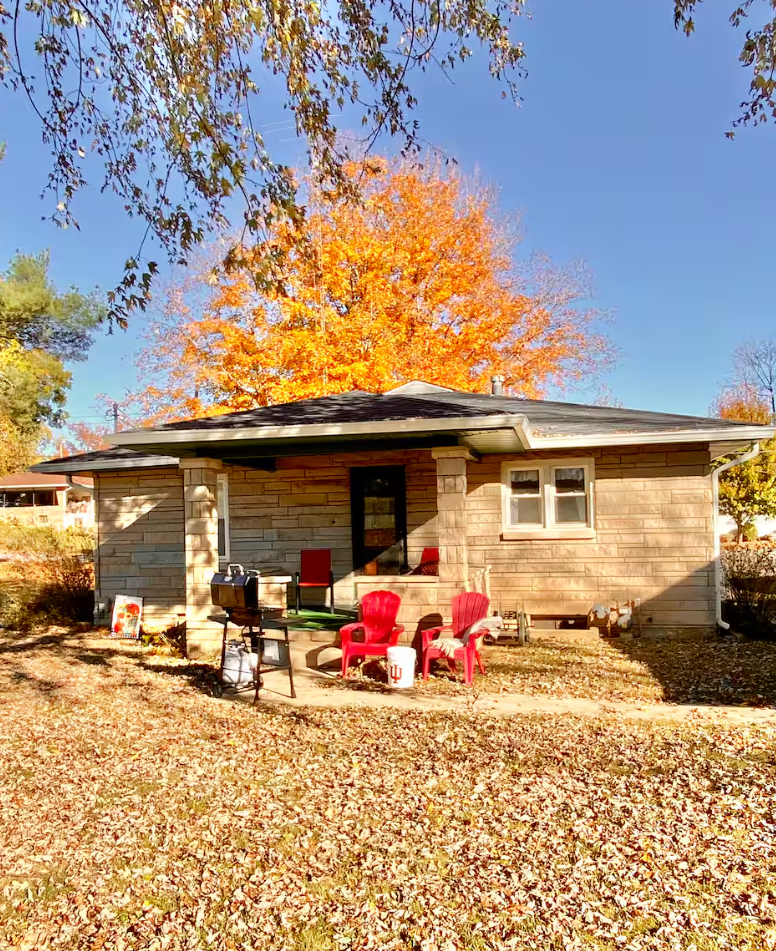 Welcome to Cosmic Cottage – a charmingly funky limestone bungalow in Bedford, Indiana where nostalgia meets modern comfort. This comfy 2BR/1.5BA home has a large yard that is perfect for kids, pets, and anyone just looking to get outside and unwind.